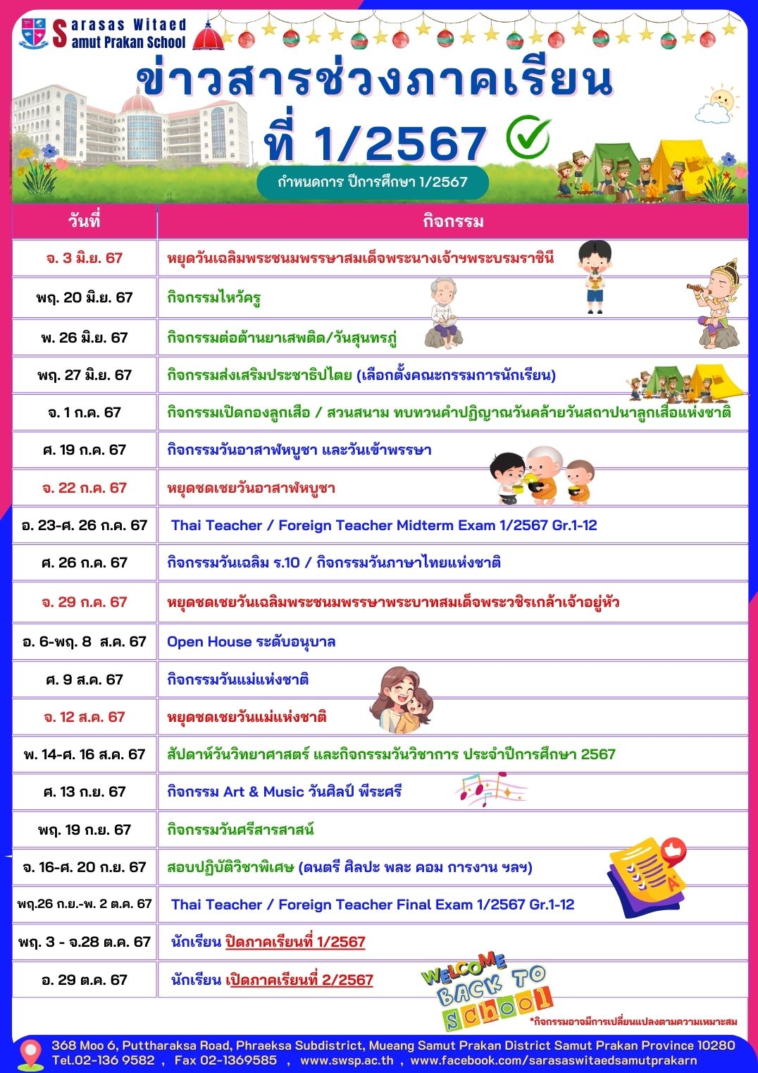 ประชาสัมพันธ์ กำหนดการ ปีการศึกษา 1/2567 *กิจกรรมอาจมีการเปลี่ยนแปลงตามความเหมาะสม |